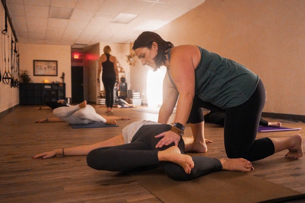 | Udbredt brug af yogaudstyr (blokke, stropper, bolster osv.) | Minimal eller ingen brug af yogaudstyr |