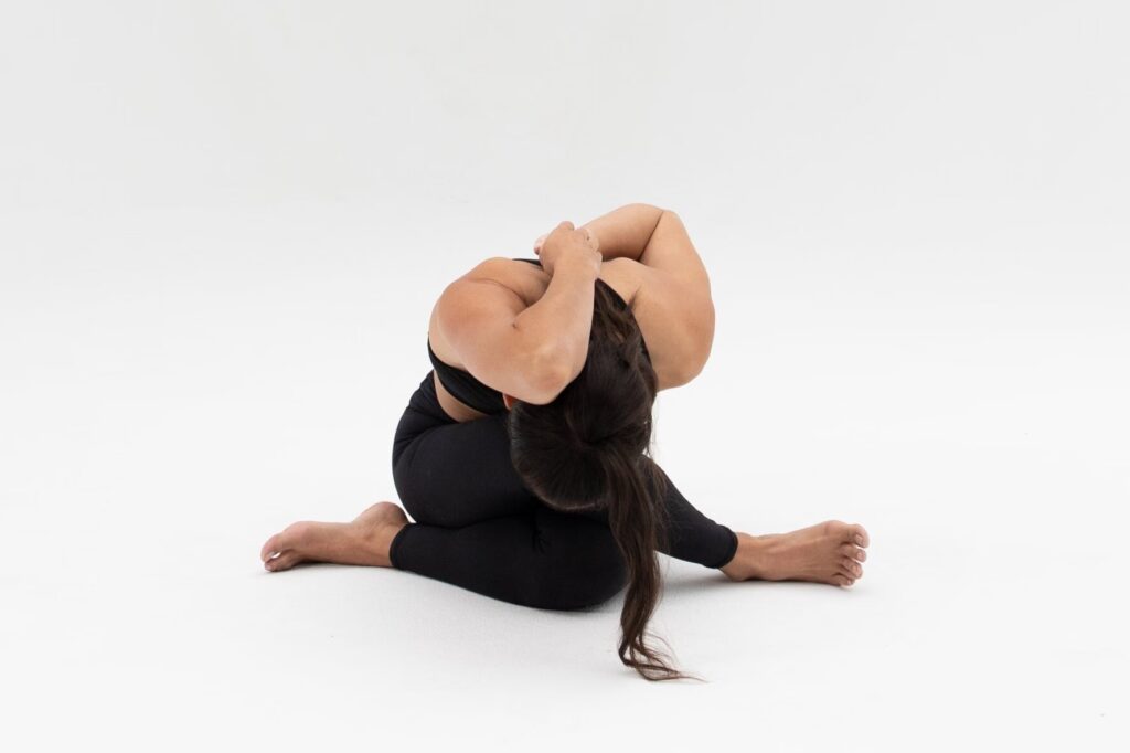 - Ja, absolut. Begyndere eller personer med begrænset fleksibilitet kan bruge hjælpemidler som yogastropper til at forbinde hænderne bag ryggen, hvis de ikke kan nå hinanden. At sidde på et foldet tæppe eller en blok kan også hjælpe med at justere hofterne og gøre stillingen mere tilgængelig. Gradvis praksis vil over tid øge fleksibiliteten.