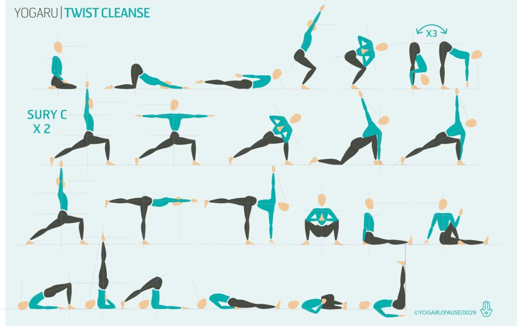Drejeøvelser er fantastiske til at 'klemme og give slip' på de indre organer. Tænk på det som at vride en våd klud – du klemmer det gamle ud, og når du slipper, strømmer nyt blod til området.