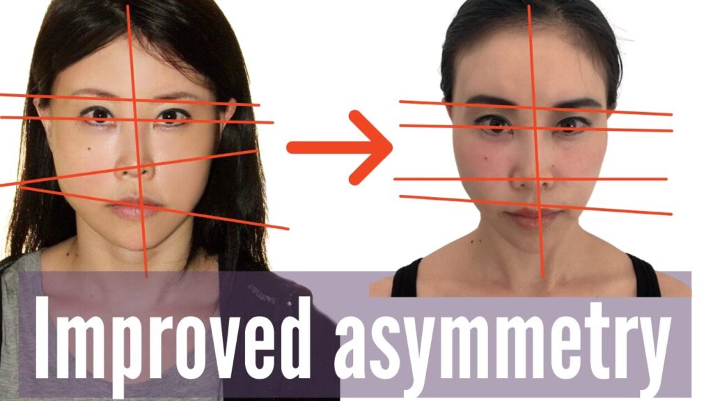 Ansigtsyoga kan hjælpe med at forbedre mindre asymmetrier forårsaget af muskelubalancer, ved at styrke svage muskler og afslappe spændte muskler. Det kan potentielt bidrage til et mere afbalanceret og symmetrisk udseende over tid ved regelmæssig træning. For mere markante asymmetrier kan professionel rådgivning fra en læge eller plastikkirurg være nødvendig.
