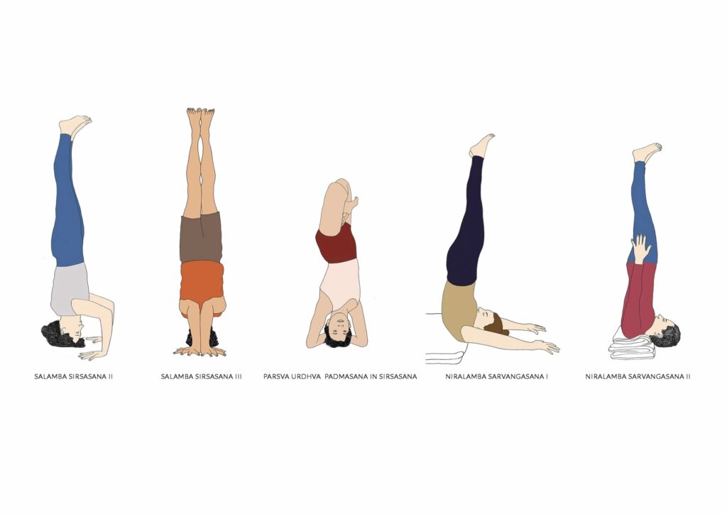 Disse inversioner introduceres gradvist og med stor omhu, ofte ved brug af Redskaber (props) for at sikre, at stillingerne er sikre og tilgængelige for alle Begyndere.
