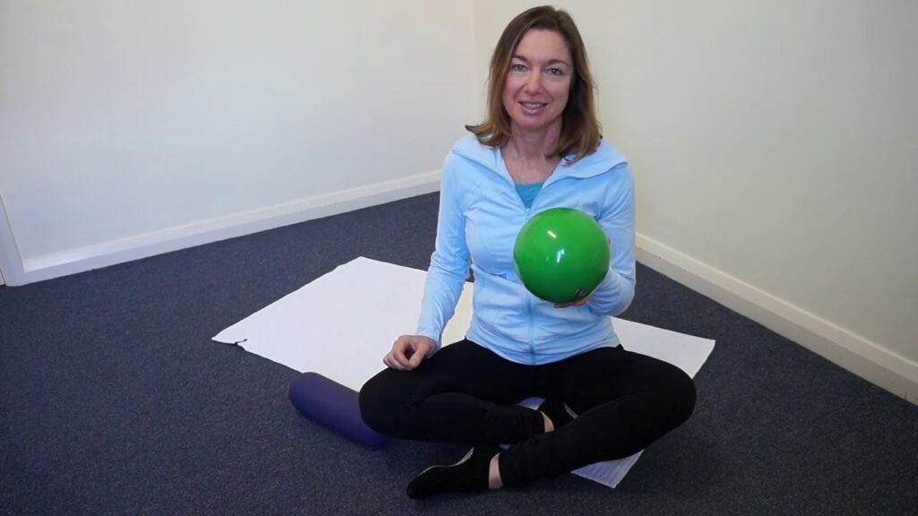 - Placer en Pilatesbold mod en væg i cirka hovedhøjde.