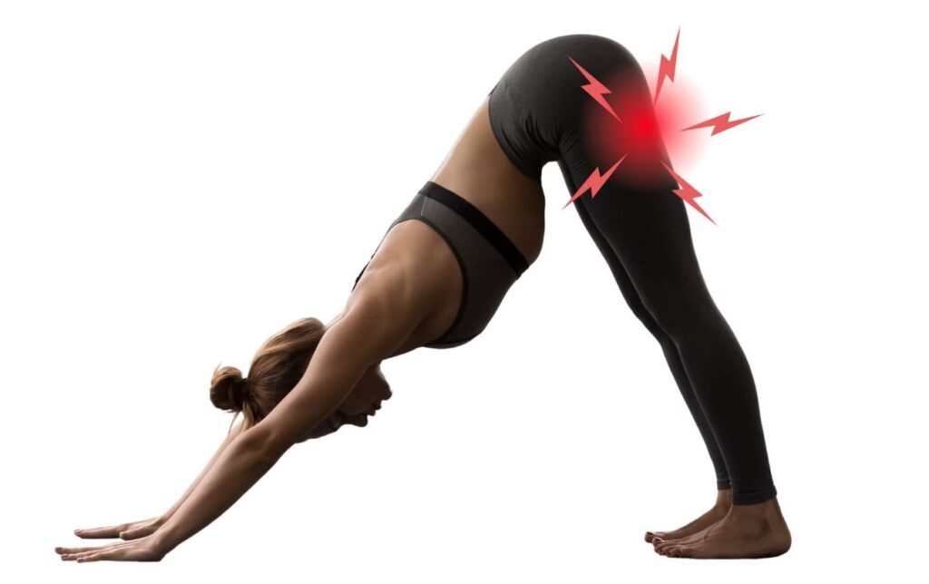 En af de specifikke udfordringer, der kan opstå i forbindelse med yogapraksis, er en tilstand, der i yogakredse ofte refereres til som 'Yoga Butt'. Dette er en almindelig problematik, hvor man oplever smerter, især under foroverbøjninger og hamstring-stræk. Den medicinske term for denne tilstand er proksimal hamstring-tendinopati. Det opstår, når senerne i hasemuskulaturen, der hæfter sig til siddeknoglerne, bliver smertefulde og ikke længere tåler normale aktiviteter uden symptomer. Når senen bliver kronisk irriteret, kan den begynde at opleve degenerative forandringer, hvilket potentielt kan øge risikoen for yderligere forstrækninger eller i sidste ende en fuldkommen ruptur.